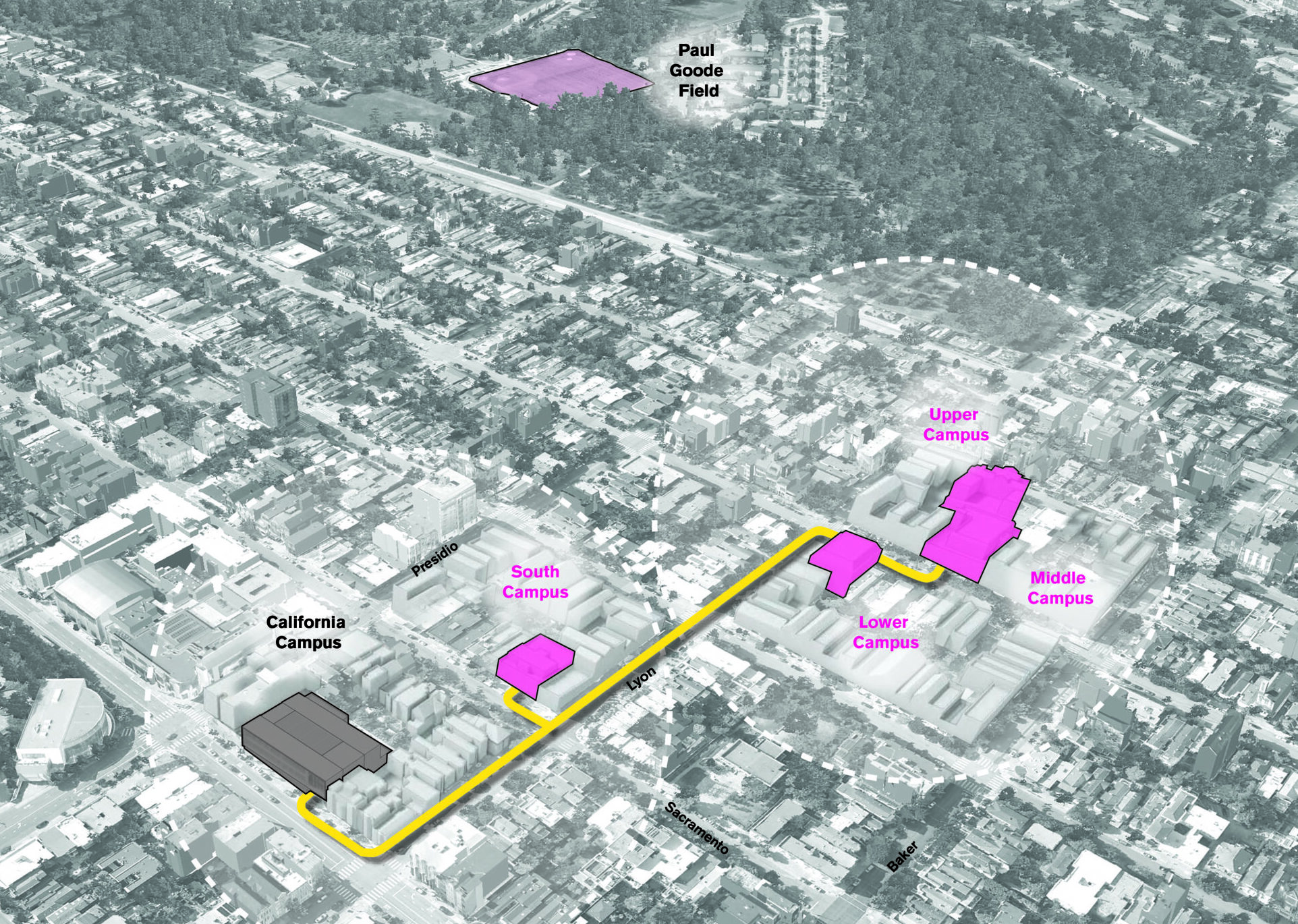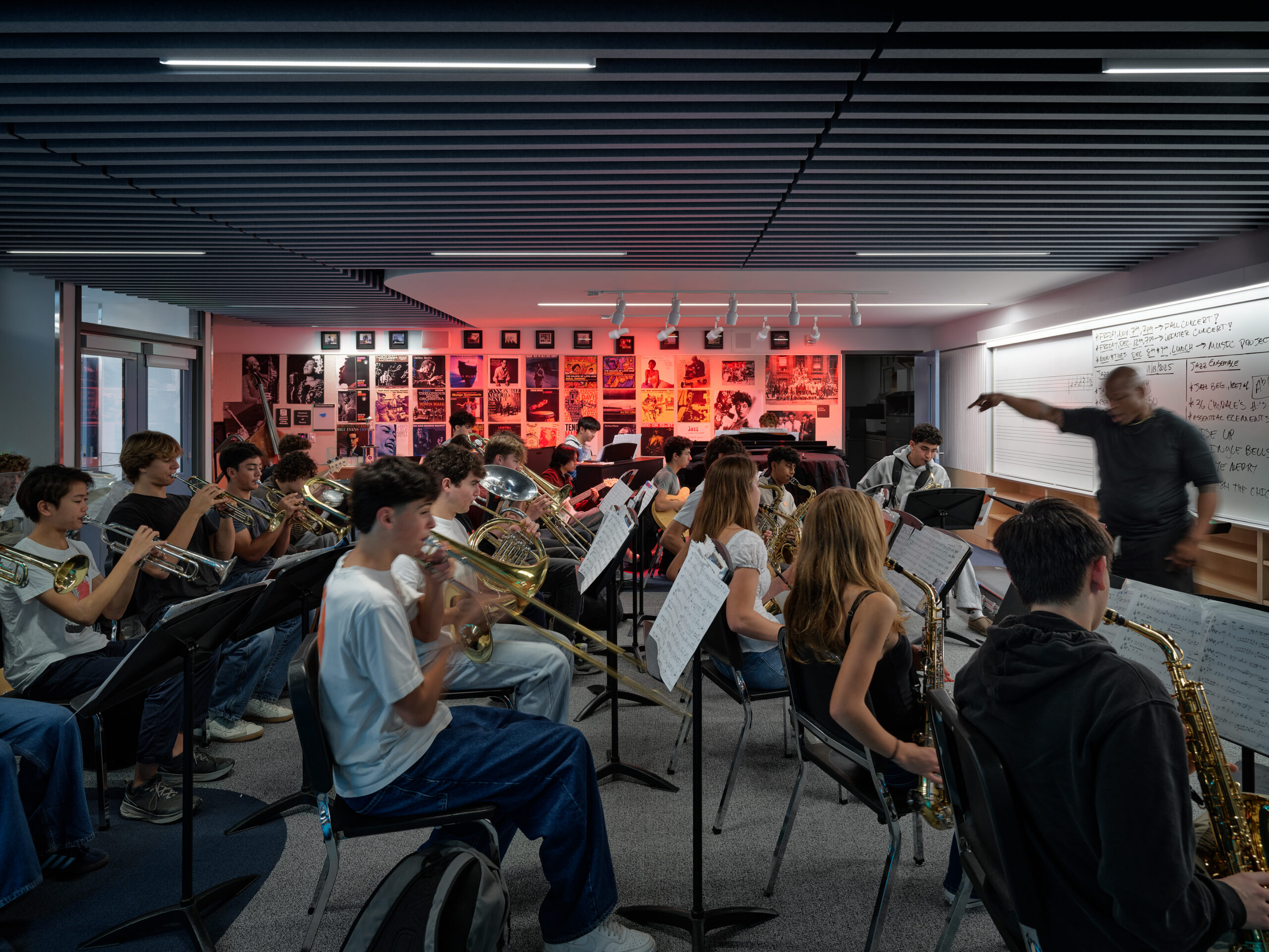 The opening of UHS's first ground-up building, the California Street Campus, enabled UHS to unlock the potential of its existing buildings. Balancing academic, community life, and faculty and administration spaces across multiple buildings required working in phases to ensure operational, programmatic, and financial efficiency. Starting with refreshing classrooms at the historic Upper Campus, LMSA continued by transforming former science labs into a performing arts hub at Middle Campus and creating new office suites for two of UHS's signature programs: Breakthrough Summerbridge and Responsive Education (RED). Finally, the renovation of Lower Campus will bring a new student commons, new math classrooms, and revitalized athletic facilities to the UHS community.